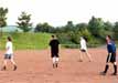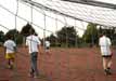Hier endlich der Beweis: die Buben spielen nicht nur bei Sonnenschein, zumindest einige von ihnen. Aus dem grauen September 2001, der dem goldenen Oktober 2001 vorausging, stammt diese kleine Bildserie des Fotografinnenduos Brigitte + Meike. Von ersterer sind die Farbbilder, von letzterer die Schwarzweißbilder. |