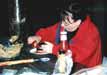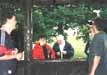 Entgegen dem vorherigen Unken des Wetterfroschs fand der Grillabend 2002 bei trockenem und fast sogar warmem Wetter statt. Zwar erwies sich der Fotoapparat des Käpt'ns der zunehmenden Dunkelheit nicht ganz gewachsen, doch zeigen seine Bilder dennoch einige nette Szenen mit hungrigen Buben und Gästen, ergänzt durch zwei Fotos von Anne. |