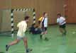 Auch bei den Winterhochschulmeisterschaften 2001 haben die Buben, wie schon in den drei Jahren zuvor, die Endrunde erreicht - zum ersten Mal allerdings als souverainer und mit 11 Punkten ungeschlagener Gruppensieger! Immerhin über eine Nacht trug das Team anschließend den Beinamen der Superbuben und Jahrtausendzehn. Doch im Achtelfinale war ihr fußballerischer Heiligenschein schon wieder verblasst: gegen den besten Gruppenvierten Tool Time konnten weder der Bubengott noch Schiri Sascha etwas retten, und nach einem 1:3 war das Turnier für uns beendet. Ihre Premiere hatten bei diesem Turnier nicht nur die neuen Bubentrikots, sondern erstmals gab es auch zum Hallenauftritt der Buben einen Pressebericht sowie Fotos von den Spielen. |