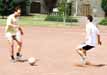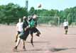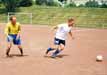 Im Sommer 2002 schafften beide Bubenteams sensationell den Einzug in die Zwischenrunde, um dort aber jeweils schmählich zu scheitern. In der ersten Gruppe standen am Ende drei Mannschaften gleichauf und warfen dadurch die Turnierplanung über den Haufen - Gegner der Buben waren hier Sturm Gauss (1:0), Rudis Reservisten (5:0), Eternal (0:0), die Saarlandauswahl (2:0) und die No Angels (1:4). Das zweite Team spielte gegen Team Übergang (3:3), die Psycho Würste (0:1), Das saarländische Kanonenfutter (7:0) und Ajax Affenkäfig (1:0), wobei erst ein Neunmeter im letzten Spiel das Weiterkommen sicherte. Mit je einem Punkt und einem Tor fiel das Ergebnis beider Teams in der Zwischenrunde dann vergleichsweise mager aus. Die Höhen und Tiefen der Geschehnisse bei diesem Turnier fanden reichlich Niederschlag in der Presse, nämlich bei der PAULIMUS, der Sport-BILD und der HAZ. Letztere ist auch für den ausführlichen Turnierbericht verantwortlich. |