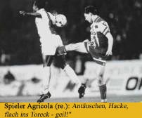 Agricola: ...in dieser Zeit der allgemeinen Buben-Euphorie habe ich ab und an mal beim Training mitgespielt. Und es funktionierte noch mit uns beiden: Antäuschen, Hacke und dann flach ins Toreck - geil! Sogar über mein Comeback habe ich damals nachgedacht!
