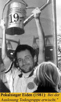 Eiden: Mmm, ich sag mal, schön wäre so'n Pott natürlich schon. Mir würde es aber zunächst einmal reichen, wenn die Jungs wieder zu einem Zeitpunkt trainieren, an dem ich auch teilnehmen kann. Die ganz großen Teams zeigen es uns doch: Der Otto, der Ottmar und der Christoph sind sogar bei den Spielen dabei!